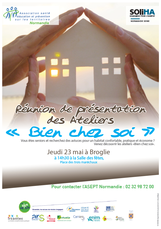 Venez découvrir l’atelier « Bien Chez Soi » le 23 mai 2019 à Broglie (14h30 à la Salle des fêtes, Place des Trois-Maréchaux – 27270 BROGLIE).